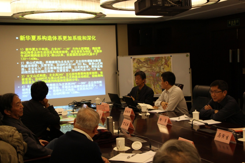 项目组成员向与会专家汇报了项目的概况和进展,构造体系图修编的思路、方案和问题。地质力学所马寅生副所长对项目组提出要发扬李四光构造体系学术思想,提高地质力学研究水平。与会专家则首先肯定了构造体系的创新性及其在资源能源环境等领域的应用价值,一致认为,项目组收集了充分的编图资料,修编思路清晰,方案基本合理,取得了重要的研究进展,希望项目组按照任务要求逐步深入,不断改进,推动地质力学构造体系研究达到新水平,并对修编工作提出了意见。